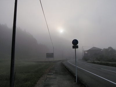 7:40 ひたすら、379号線を歩く。この辺は、毎朝深い霧に包まれる。