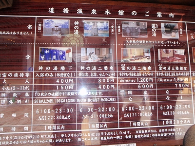 これより高い切符は全て浴衣、お茶、お菓子のサービスがある。霊の湯は貸タオルつき。