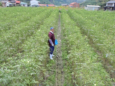 こんなとこで、観賞用の花を栽培してるってことはないよなーと思っていると、農作業中のおじさんを発見