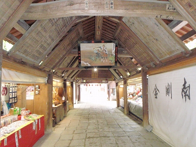 敷地内に入ると、木製のアーケードがあって、店が並んでいる。