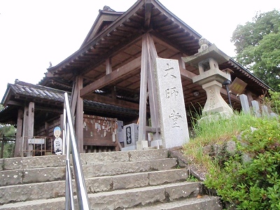 左にかねつき見たいのがあって、正面が本堂、左の階段を登ったとこに大師堂がある